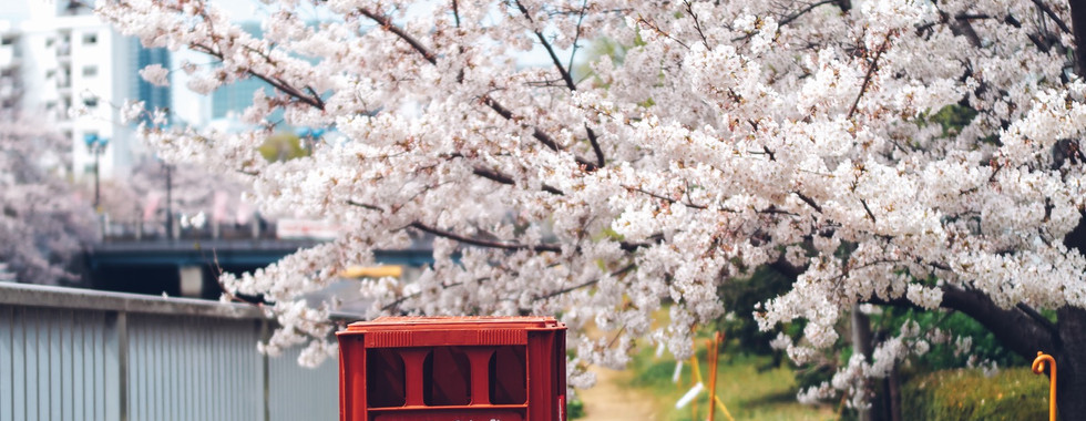 先搭乘地鐵到清澄白河站,然後走去清澄白河藍瓶咖啡買杯拿鐵,再Google定位『芭蕉俳句の散歩道』前往,可以延著河道步行至越中島方向,途中會經清澄橋、清川橋、松永橋等橋樑,整個水道兩側種滿了櫻花,超級漂亮。